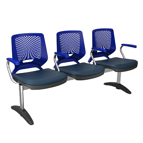 Longarina 03 Lugares com Encosto em Polipropileno e Apoio de Braços
