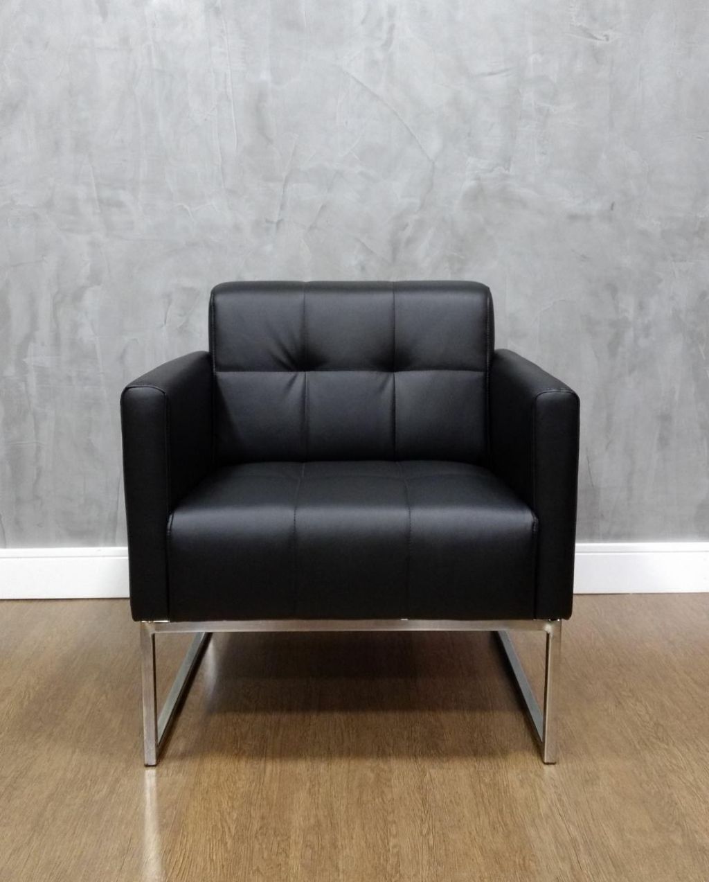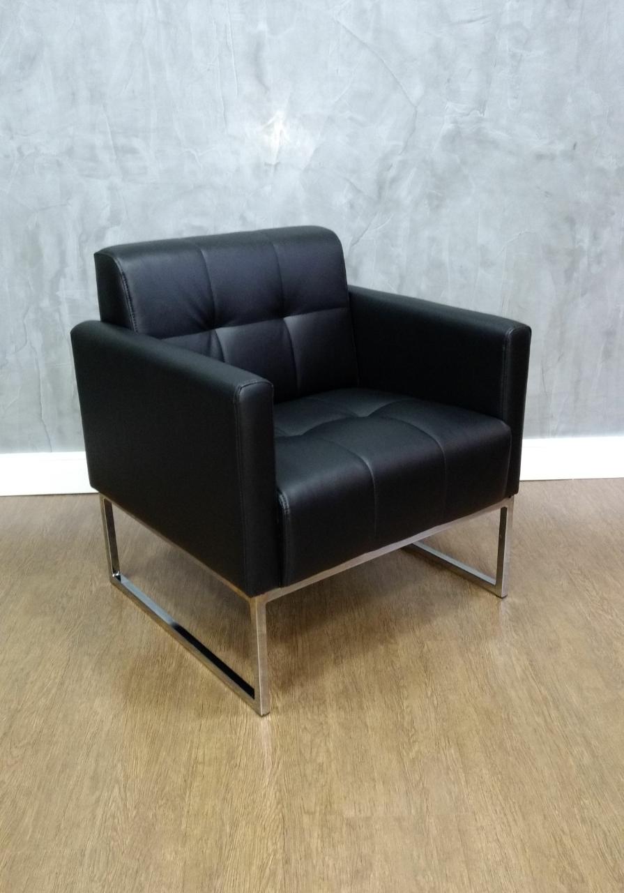 Poltrona 01 lugar revestida em couro ecológico base cromada