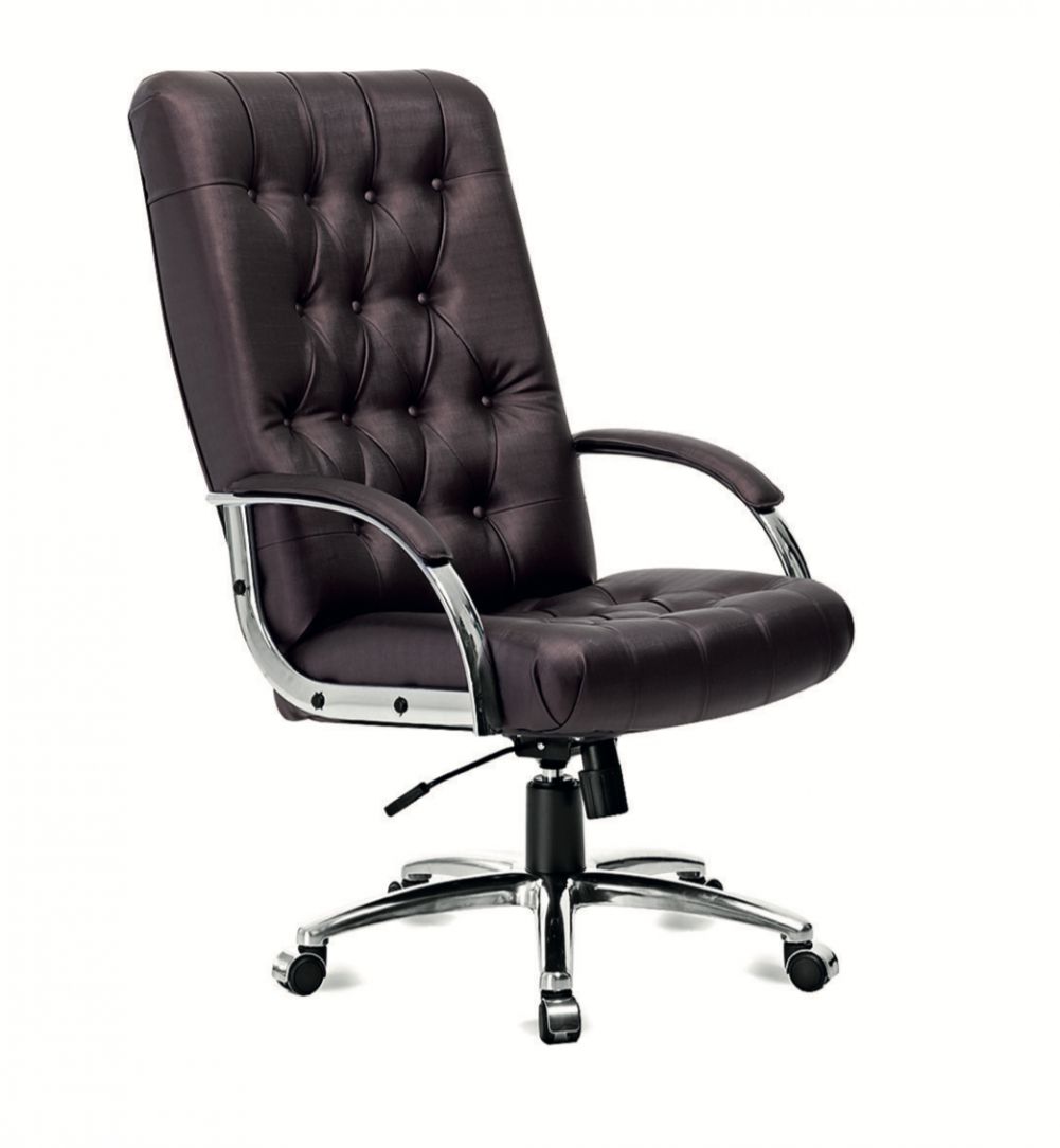Poltrona Presidente com base e braços cromados detalhe Capitonê